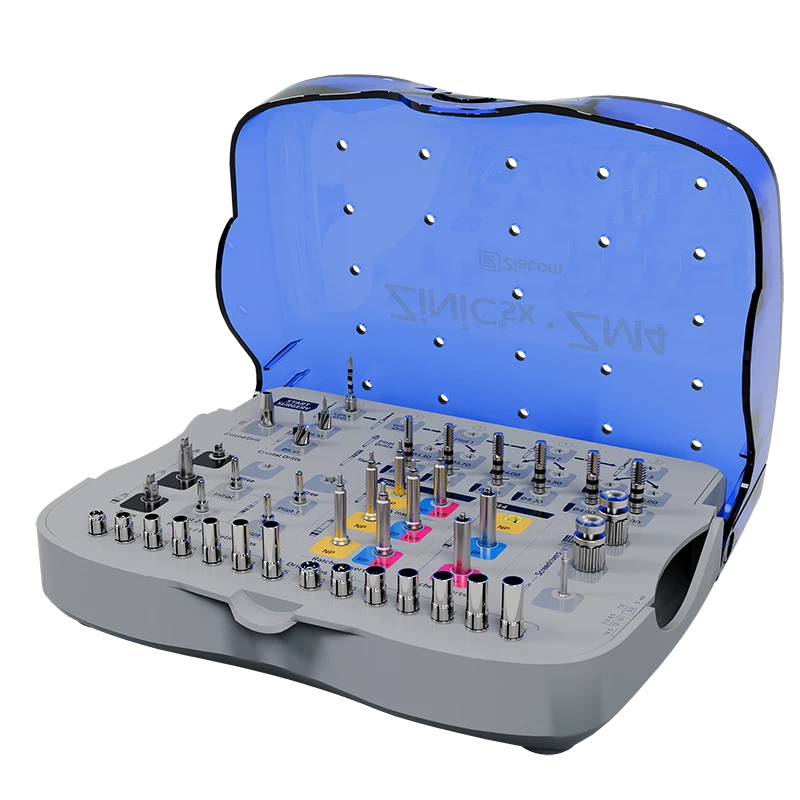 O kit ZinicSX + ZM4 foi desenvolvido para integrar dois sistemas de implantes numa única caixa cirúrgica, assegurando funcionalidade e eficiência durante os procedimentos. Todo o instrumental está otimizado para ambos os sistemas, tornando este kit ideal para profissionais que pretendem simplificar o fluxo de trabalho cirúrgico e aumentar a produtividade clínica.