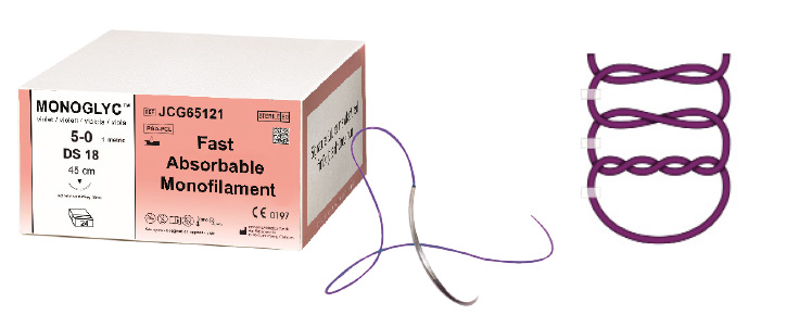 As estruturas de superfície monofilamentares lisas do polímero Monoglyc™ resultam em excelentes propriedades de manuseamento e de passagem dos tecidos. O traumatismo tecidular provocado pela sutura é praticamente inexistente com o Monoglyc™, e a estrutura monofilamentar evita a absorção de bactérias. A superfície lisa do Monoglyc™ proporciona excelentes propriedades de manuseamento, combinadas com a agulha afiada e de alta qualidade que permite uma passagem atraumática através do tecido.
